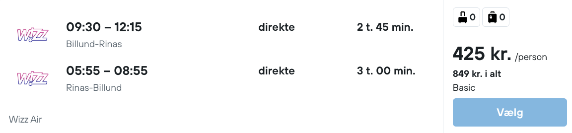 Hvis rejsen er med “Vis rejse” link, så er der tale om en pakkerejse, hvor fly og hotel bestilles på en gang.