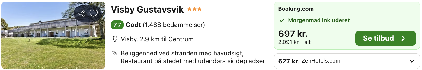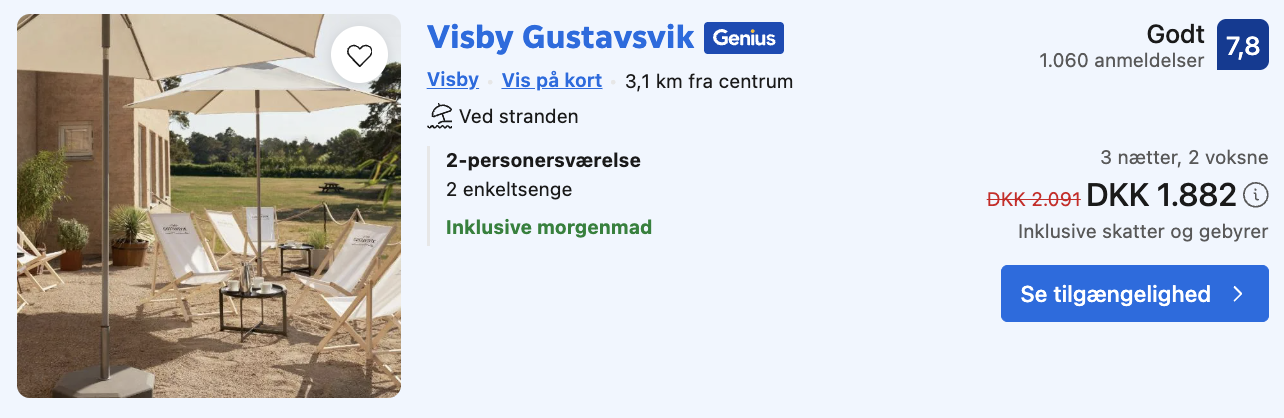 Husk at logge ind / oprette en gratis bruger på Trivago samt hos Booking.com. Derved opnås den bedste pris!