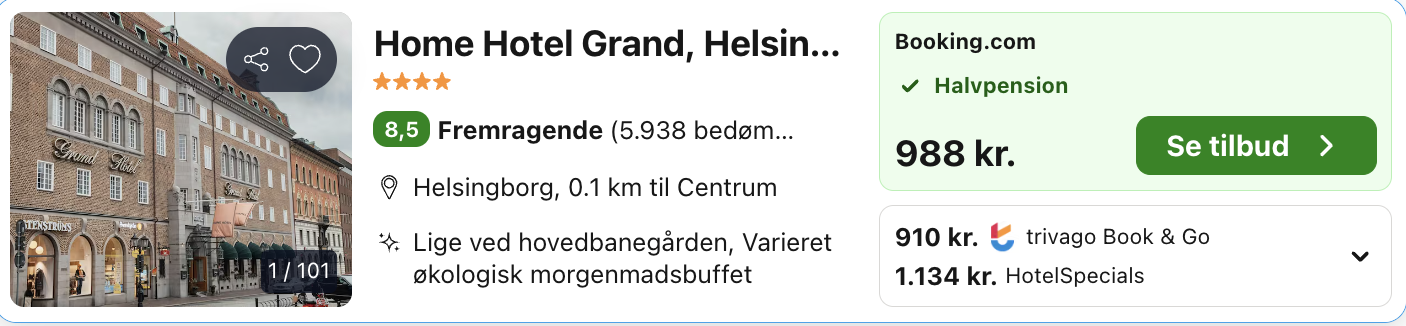 Weekendophold i Helsingborg med halvpension for kun 455,- per person inkl. flot 4-stjernet hotel med central beliggenhed!