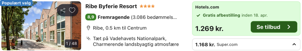 Bemærk: Den samlede pris for opholdet er 1.168,- for 2 personer, hvilket svarer til 584,- per person. Der kan være mindre forskelle i prisen på mobil og pc. Undersøg med fordel, hvor det er billigst inden bestilling. Rejs365 er ikke et rejsebureau, men en rejseside, der finder gode tilbud! – Vi modtager kommission, men det påvirker ikke din pris! Læs mere her |