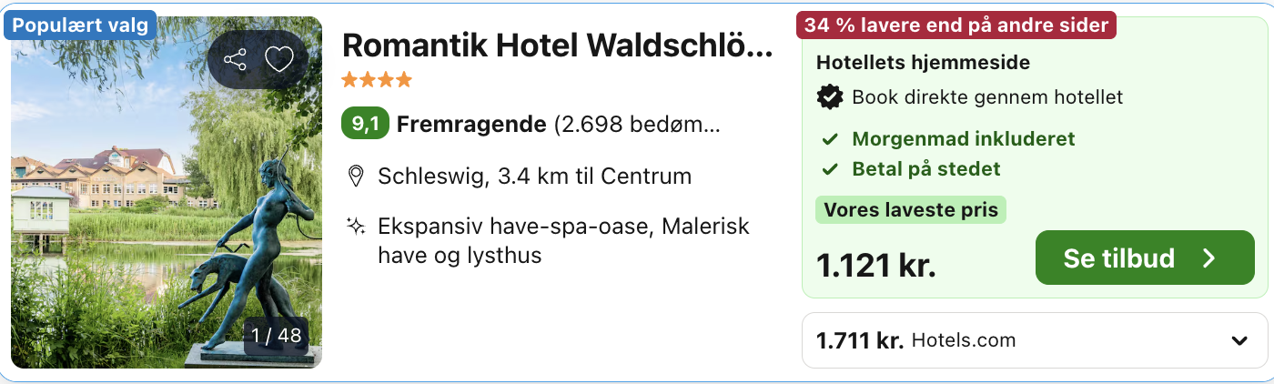 Bemærk: Den samlede pris for opholdet er 1.121,- for 2 personer i et dobbeltværelse, hvilket svarer til 561,- per person. Rejs365 er ikke et rejsebureau, men en rejseside, der finder gode tilbud! – Vi modtager kommission, men det påvirker ikke din pris! Læs mere her |