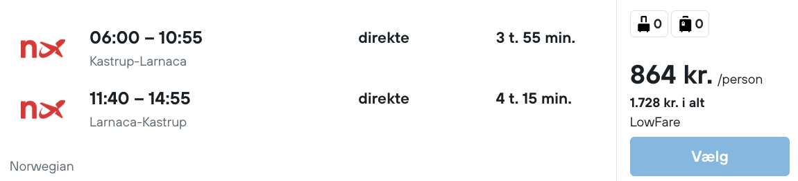 Flyprisen inkluderer kun en lille taske, men bagage kan tilkøbes.