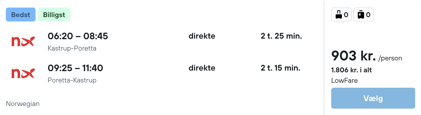| Bemærk: Husk at lade søgningen på vores flysøgemaskine blive helt færdig.