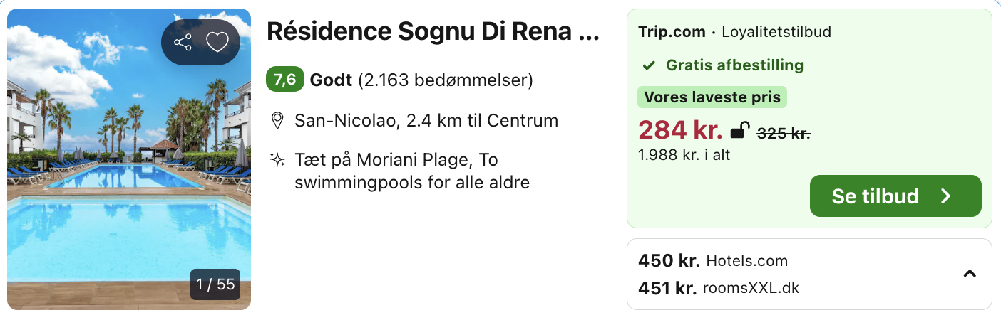 Log ind eller opret en gratis bruger på Trivago. Vælg Trip.com for at opnå den bedste pris. Rejs365 er ikke et rejsebureau, men en rejseside der finder gode tilbud! – Vi modtager kommission, men det påvirker ikke din pris! Læs mere her |