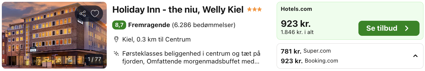 Vi har taget udgangspunkt i et ophold fra den 1. – 3. maj på Holiday Inn – the niu Welly Kiel, der ligger centralt i den nordtyske havneby Kiel, kun få minutters gang fra banegården, havnepromenaden og byens shoppingområder. Hotellet kombinerer Holiday Inns internationale komfortstandard med the niu-konceptets moderne, maritime design, inspireret af Kiels stolte søfartshistorie. Værelserne er stilfuldt indrettet med nordisk minimalisme, varme farver og smarte detaljer som komfortable senge, lydisolering og praktiske arbejdsområder.