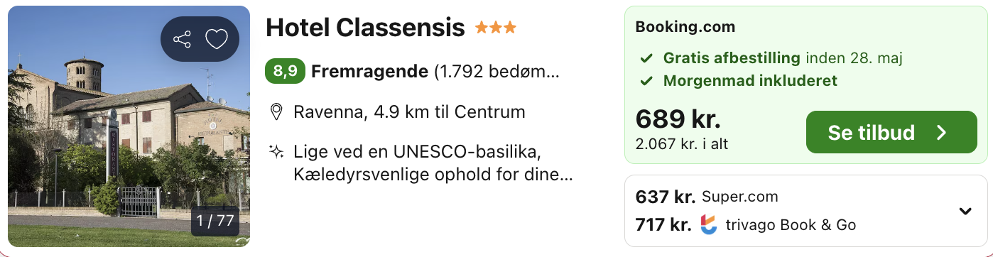 4 dage i Ravenna for kun 1.485,- per person inkl. fly og godt hotel med morgenmad!
