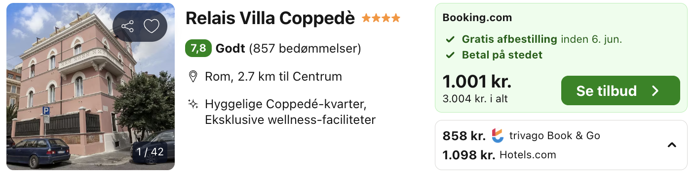 Hvis rejsen er med “Vis fly” og “Vis hotel” link, så er der tale om en sammensat rejse. Det vil sige at fly og hotel skal bestilles hver for sig. Prisen vi angiver vil dog være samlet for fly og hotel med mindre andet er angivet.