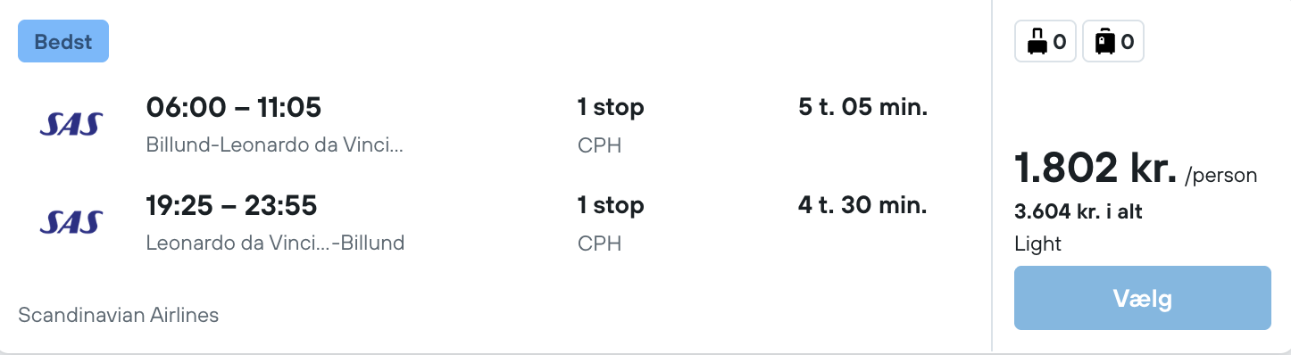 Flyprisen inkluderer kun en lille taske, men bagage kan tilkøbes.