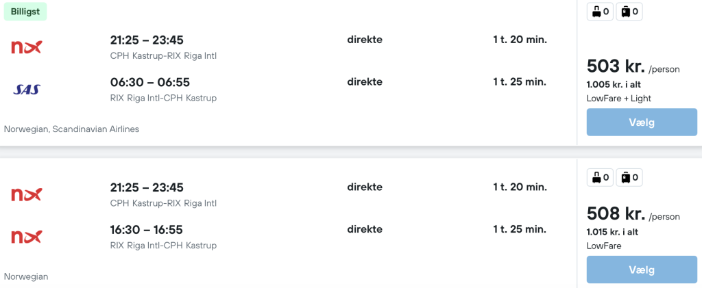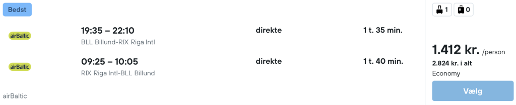 På vores flysøgemaskine har vi fundet billige flybilletter fra København og Billund til Riga: