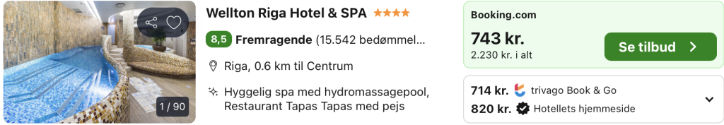 | Bemærk: Husk at lade søgningen blive helt færdig. Vælg “Vores laveste pris” på trivago, for at opnå den bedste pris på hotellet.