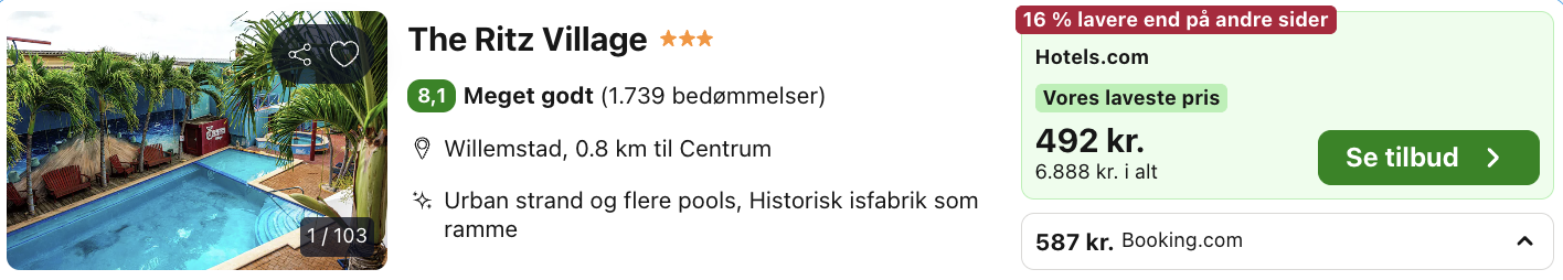 2 uger på Curaçao for kun 9.867,- inkl. fly og flot 3-stjernet hotel med pool og god beliggenhed!