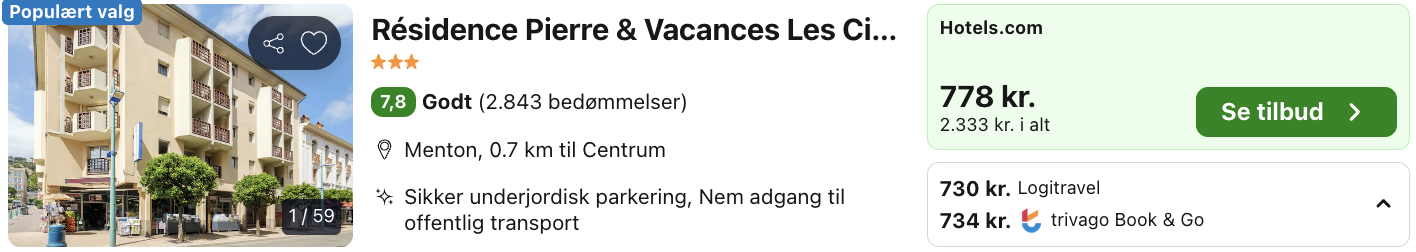 4 dage i Menton for kun 2.091,- per person inkl. fly og godt 3-stjernet hotel med god beliggenhed!