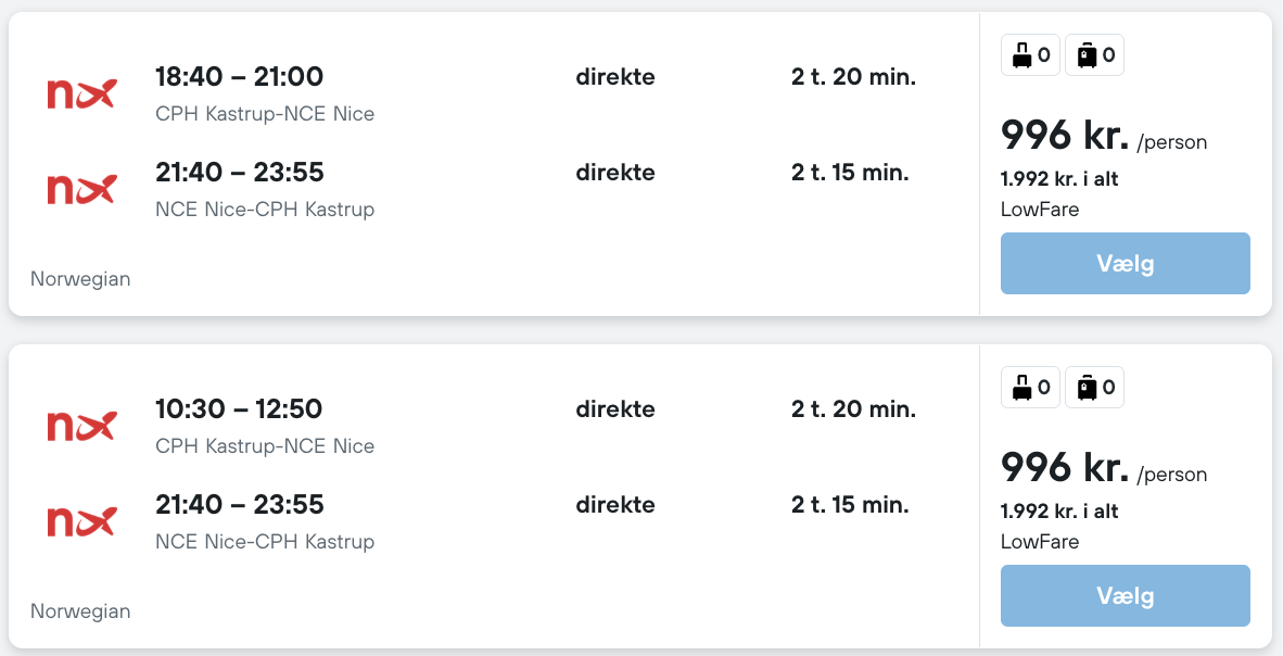 Flyprisen inkluderer kun en lille taske, men bagage kan tilkøbes.