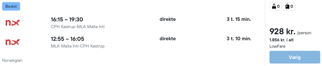På vores flysøgningsmaskine har vi fundet billige flybilletter fra København til Malta: