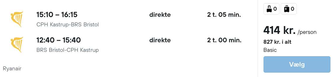 Flyprisen inkluderer kun en lille taske, men bagage kan tilkøbes.