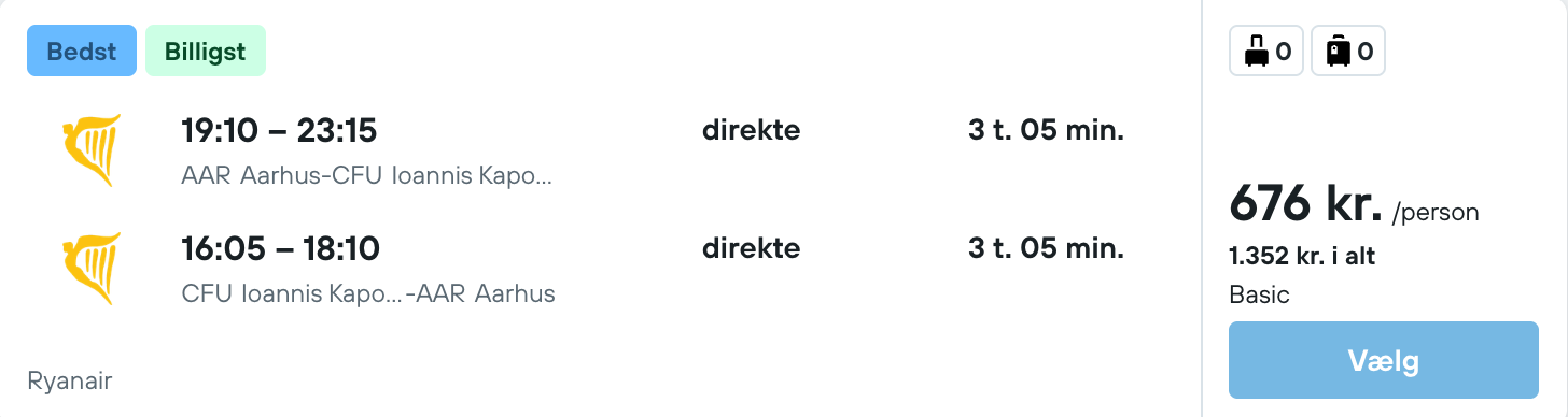 Vi har på vores flysøgningsmaskine fundet billige billetter fra Aarhus til Korfu: