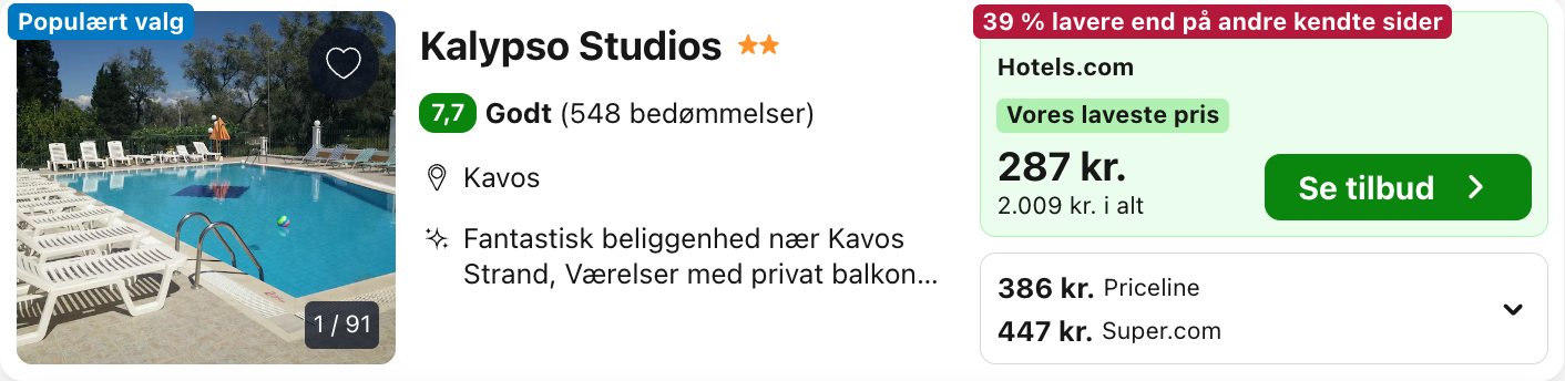 1 uge på Korfu for kun 1.681,- per person inkl. fly og 3-stjernet hotel med pool og god beliggenhed!