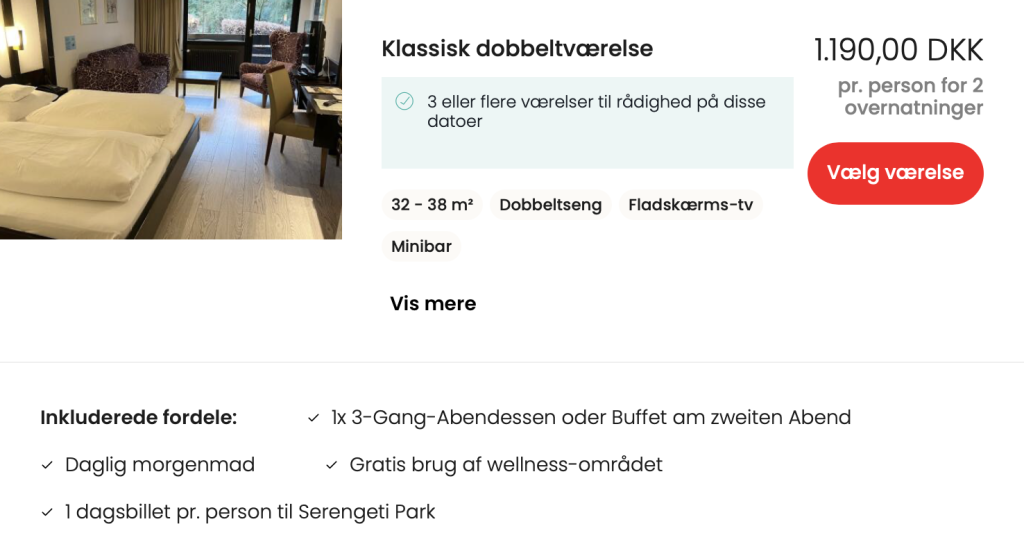 3 dage i Nordtyskland for kun 1.190,- per person inkl. 4-stjernet hotel med morgenmad begge dage samt én lækker middag, fri adgang til pool og spa og adgang til Serengeti Park!