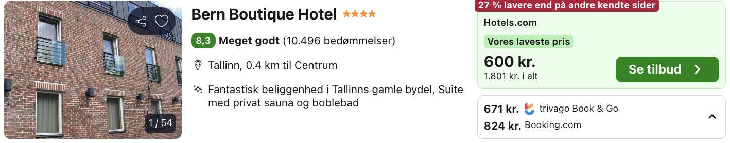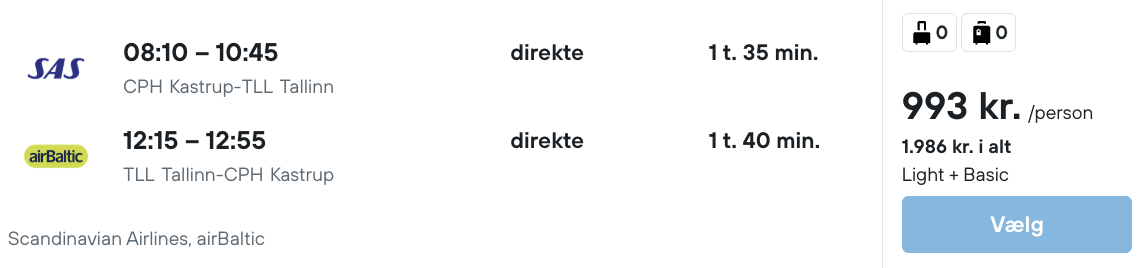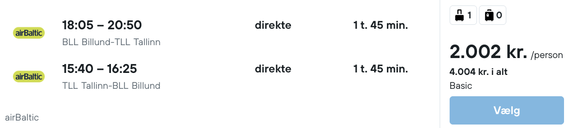 På vores flysøgemaskine har vi fundet billige flybilletter fra København og Billund til Tallinn:
