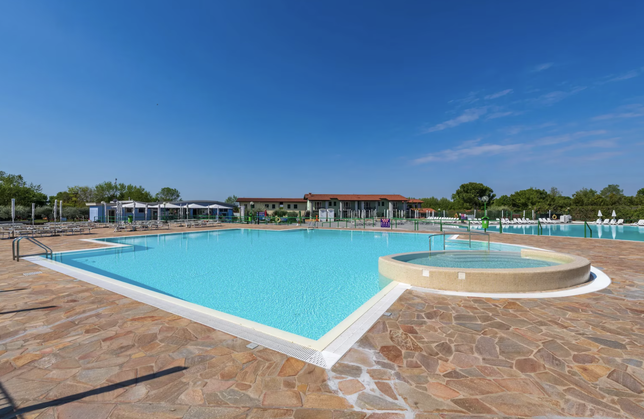 Feriekomplekset har et stort poolområde med flere swimmingpools, herunder børnepool og jacuzzi, samt direkte adgang til stranden ved søen. Derudover tilbydes faciliteter som restaurant, bar, supermarked og forskellige aktiviteter for både børn og voksne. Samlet set er The Garda Village et familievenligt valg med god beliggenhed, mange faciliteter og fokus på både afslapning og aktiviteter ved Gardasøen.