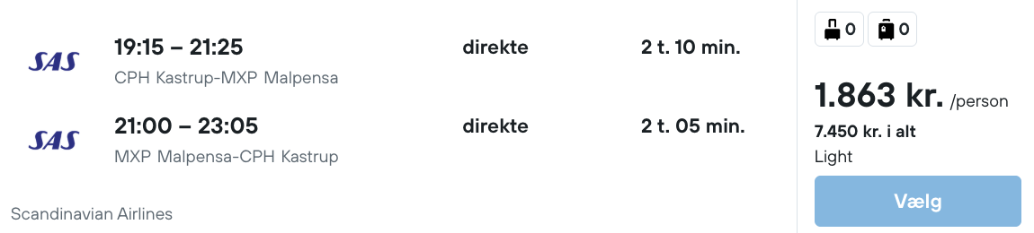 Hvis rejsen er med “Vis rejse” link, så er der tale om en pakkerejse, hvor fly og hotel bestilles på en gang.