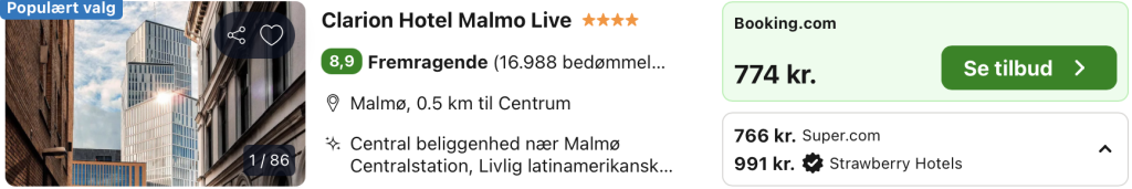 Vi har taget udgangspunkt i et ophold fra den 27. – 28. juni på Clarion Hotel Malmö Live, der er et imponerende og moderne hotel, der tilbyder en unik oplevelse i den livlige by Malmö. Beliggende tæt på både byens centrum og havneområdet, kombinerer hotellet et stilfuldt design med komfortable faciliteter og fremragende service. Det er det perfekte valg for både forretningsrejsende og turister, der ønsker at udforske byen.