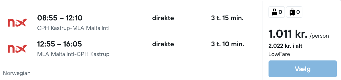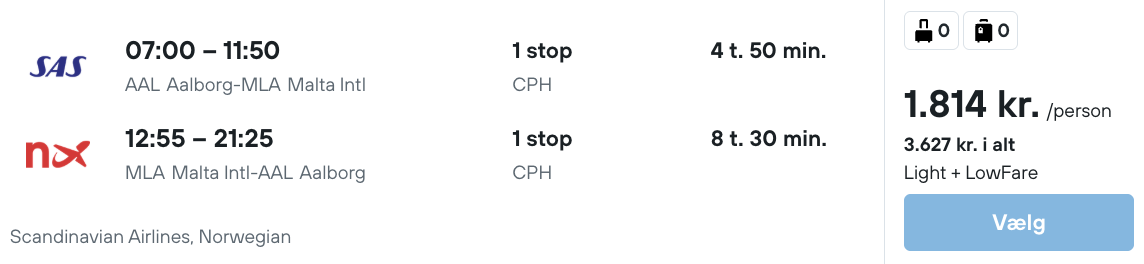 Flyprisen inkluderer kun en lille taske, men bagage kan tilkøbes.