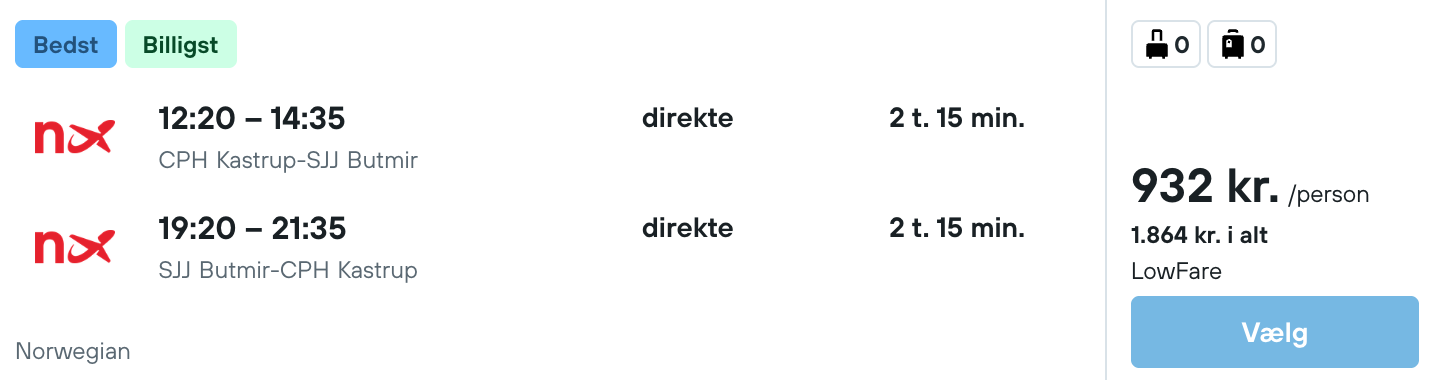 Flyprisen inkluderer kun en lille taske, men bagage kan tilkøbes.