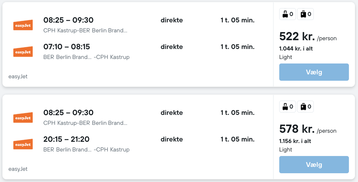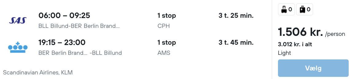 Flyprisen inkluderer kun en lille taske, men bagage kan tilkøbes.