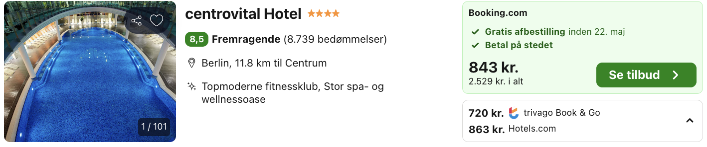 Log ind eller opret en gratis bruger på Trivago for at opnå den bedste pris.
