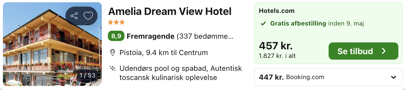 | Bemærk: Husk at lade søgningen blive helt færdig. Der kan være mindre prisforskelle på mobil og pc. Undersøg med fordel, hvor det er billigst inden bestilling. Vælg “Vores laveste pris” på trivago, for at opnå den bedste pris på hotellet.