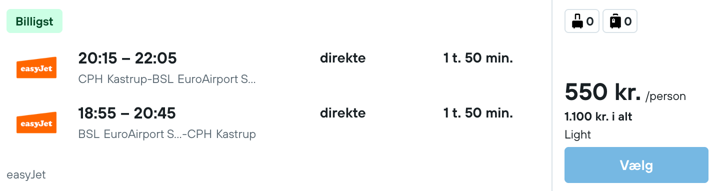 På vores flysøgningsmaskine har vi fundet billige flybilletter fra København til Basel: