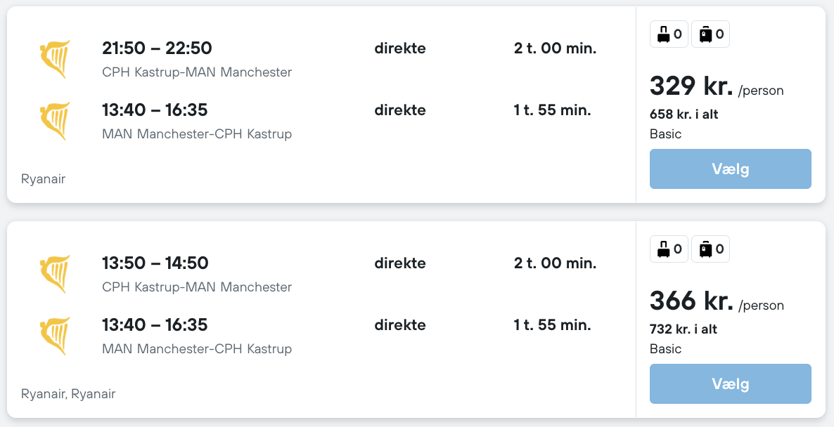 Bemærk: Husk at lade flysøgningen blive helt færdig! Der kan være mindre prisforskelle på mobil og pc. Undersøg med fordel, hvor det er billigst inden bestilling.