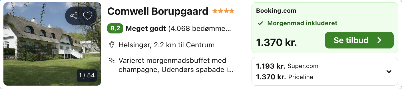 Bemærk: Den samlede pris for opholdet er 1.193,- for 2 personer i et dobbeltværelse, hvilket svarer til 597,- per person. Der kan være mindre prisforskelle på mobil og pc. Undersøg med fordel, hvor det er billigst inden bestilling Rejs365 er ikke et rejsebureau, men en rejseside, der finder gode tilbud! – Vi modtager kommission, men det påvirker ikke din pris! Læs mere her |