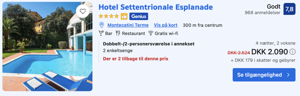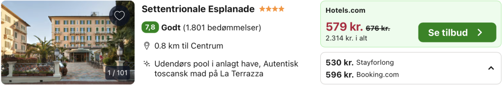 Husk at logge ind / oprette en gratis bruger på trivago samt hos Booking.com. Derved opnås den bedste pris!