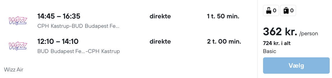 Flyprisen inkluderer en lille taske, men håndbagage kan tilkøbes.