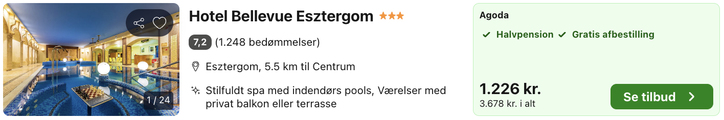 4 dages forlænget weekend i Esztergom for kun 2.201,- per person inkl. fly og godt 3-stjernet hotel med halvpension samt lækkert spa- og poolområde!
