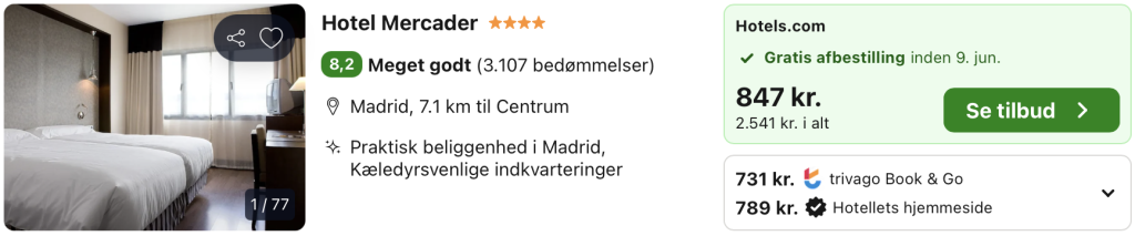 Hvis rejsen er med “Vis rejse” link, så er der tale om en pakkerejse, hvor fly og hotel bestilles på en gang.