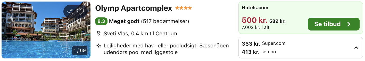 2 uger i Sveti Vlas for kun 4.048,- per person inkl. fly og godt hotel med pool og beliggenhed tæt på stranden!
