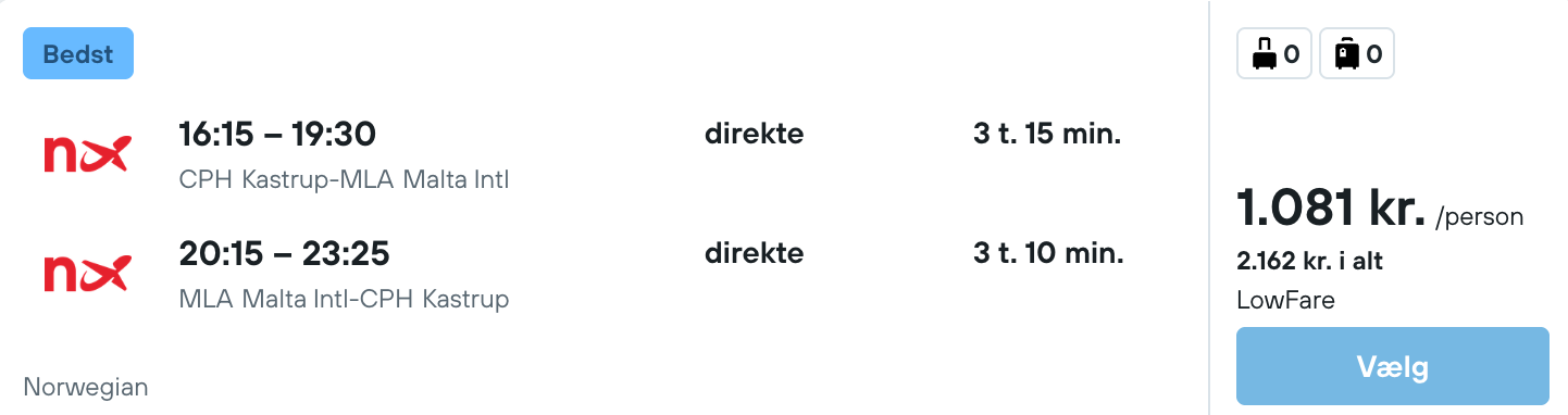 På vores flysøgningsmaskine har vi fundet billige flybilletter fra København til Malta: