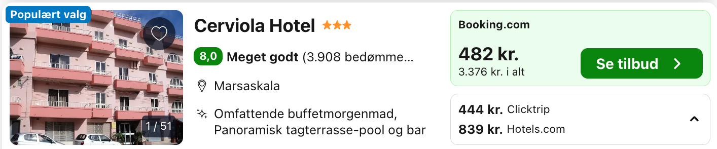 SE det gode tilbud til malta HER: