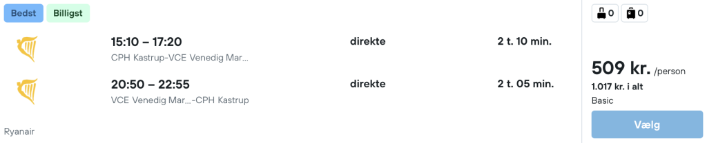 På vores flysøgningsmaskine har vi fundet billige flybilletter fra København til Venedig. Herfra er der ca. 1,5 time til Trieste.