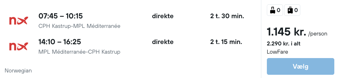 Flyprisen inkluderer kun en lille taske, men bagage kan tilkøbes.