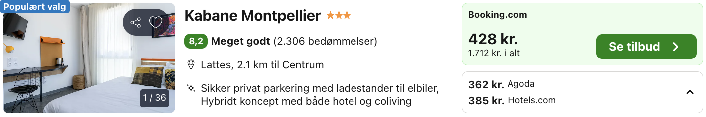På vores flysøgningsmaskine har vi fundet billige flybilletter fra København og Aalborg til Montpellier: