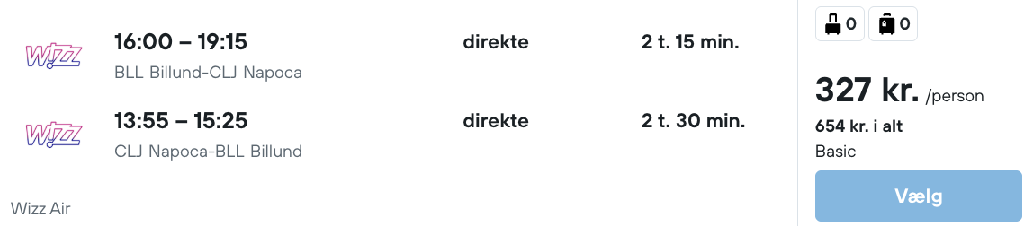 På vores flysøgemaskine har vi fundet billige fly fra Billund til Cluj-Napoca: