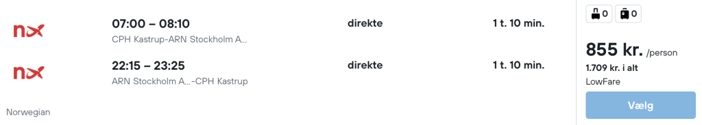 Vi har fundet billige flybilletter fra København og Billund til Stockholm: