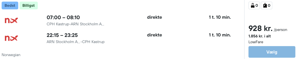 Vi har fundet billige flybilletter fra København og Billund til Stockholm: