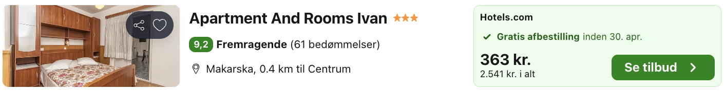 1 uge i Makarska for kun 2.096,- per person inkl. fly og 3-stjernet hotel med god beliggenhed!