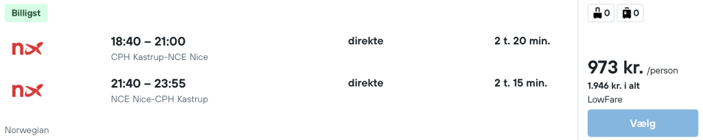 Flyprisen inkluderer kun en lille taske, men bagage kan tilkøbes.