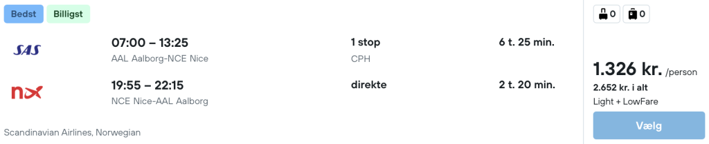 På vores flysøgemaskine har vi fundet billige flybilletter fra København og Aalborg til Nice.